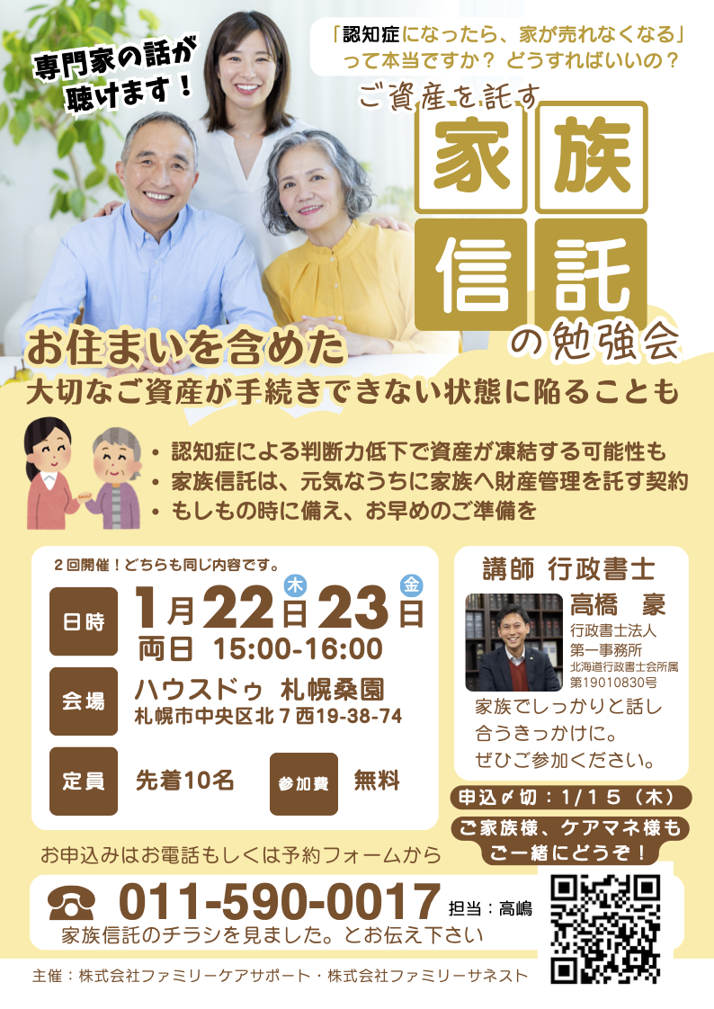 ご家族向け、ケアマネ向け【家族信託セミナー】